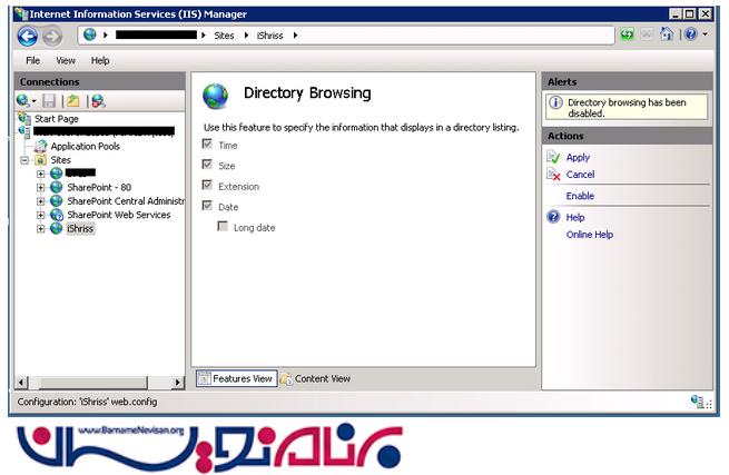 در اینجا Directory Browsing در حال حاضر فعال می باشد و ما آن را غیر فعال می کنیم.
