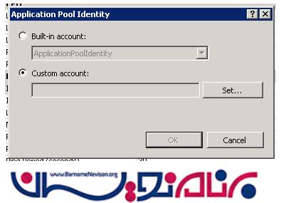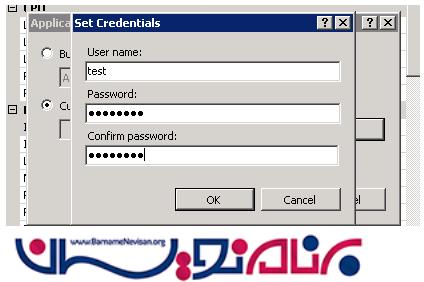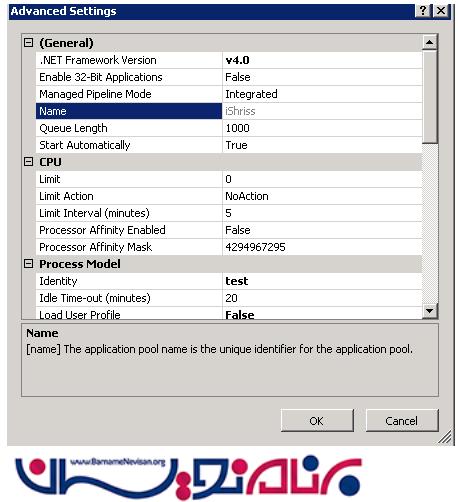نسخه NET Framework. و Identity کاربر را که مدیر (admin) با آن اجازه دسترسی داده تنظیم کنید.