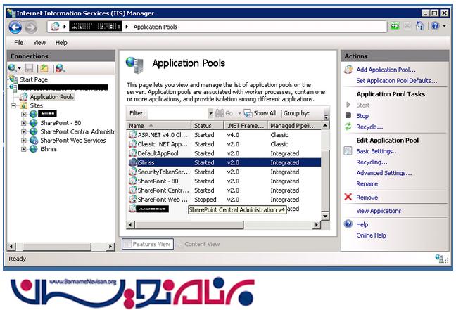 به Application pool رفته و تنظیمات پیشرفته را انتخاب کنید.
