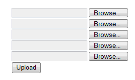 <form action="/" method="post" enctype="multipart/form-data"> <input type="file" name="FileUpload1" /><br /> <input type="submit" name="Submit" id="Submit" value="Upload" /> </form>