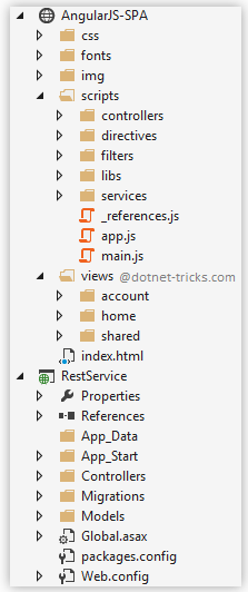 تعریف ساختار پوشه AngularJS SPA در نرم افزار VS