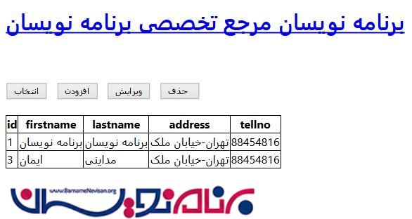 در حال حاضر با کلیک بر روی هر کدام از دکمه های حذف درج انتخاب و ویرایش چهار عمل اصلی یا CRUD به درستی کار خواهد کرد