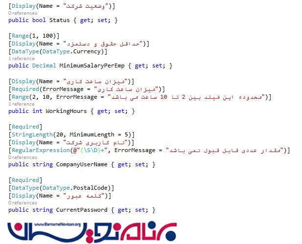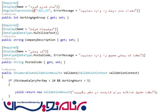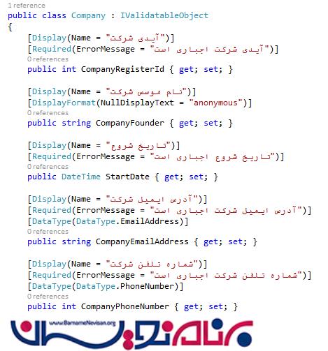 اسمبلی “ComponentModel.DataAnnotations” دارای صفات اعتبارسنجی زیادی می باشد. برای مثال :