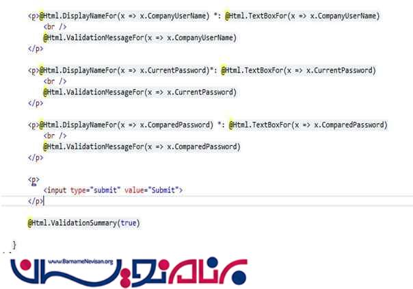 نکته مهم : در این View باید “ValidationSummary” برابر با True باشد.