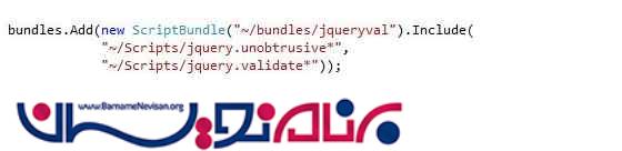 حالا شما نیاز به اضافه کردن رفرنس جاوااسکریپت در فایل “BundleConfig.cs” دارید. یکScript Bundle (بسته جاوااسکریپت) مانند زیر می سازیم :