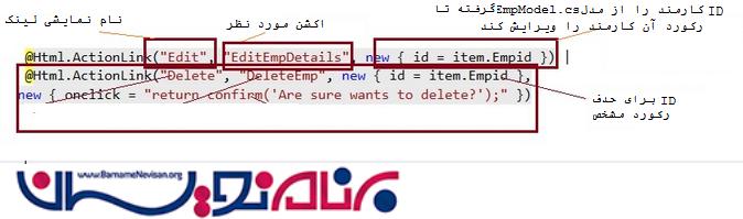 ActionLink بالا را به GetAllEmpDetails.CsHtml مربوط بهview اضافه کردیم، چرا که خود لینک گزینه مورد نظر را حدف کرده و رکوردها را به روز رسانی می کند.