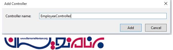پس از کلیک کردن بر روی دکمه Add ، پنجره زیر نشان داده خواهد شد. حالا نام کنترلر خود را با عنوان Employee و با پسوند Controller تعیین کنید، مانند زیر: