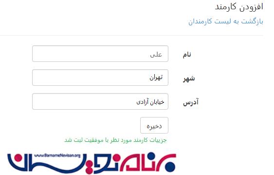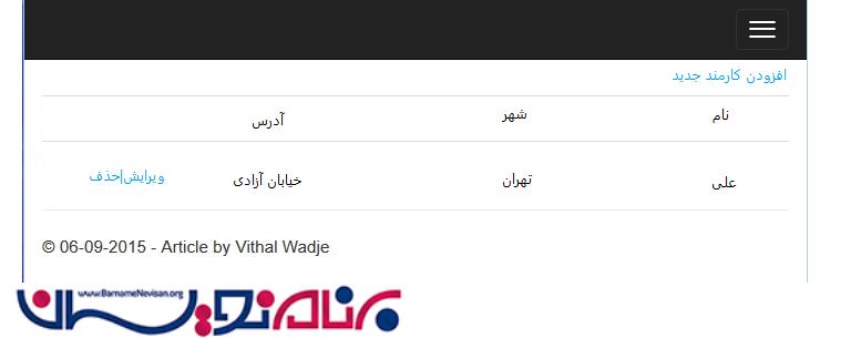 بر روی لینک بازگشت به جزییات"" کلیک کنید سپس به لیست جدول کارمندان بازگردانده خواهد شد که در آن رکوردها مانند زیر update شده اند: