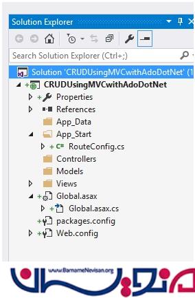حالا بعد از اضافه کردن تمام مدل ها، view ها و controller در solution explorer به صورت شکل زیر خواهد شد: