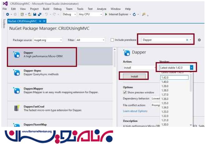 عملیات CRUD با استفاده از Dapper ORM در MVC
