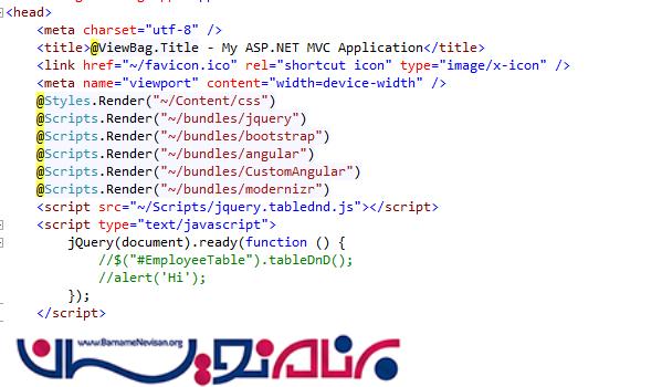 حال باید مطمئن شوید که این فایل ها به مسترپیج (_layout.cshtml)شما افزوده شده است .همانطور که در شکل زیر می بینید