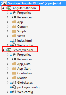 ساختار پروژه به این صورت است که دو پروژه در ان قرار دارد یکی پروژه angularJs به مشتری است و دیگری یک پروژه web Api است. که در پوشه App-Data بانک اطلاعاتی قرار دارد.