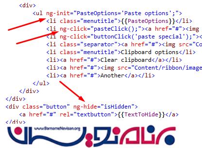 اضافه کردن ویژگی های AngularJs در یک صفحه HTML مانند تصویر زیر میباشد.