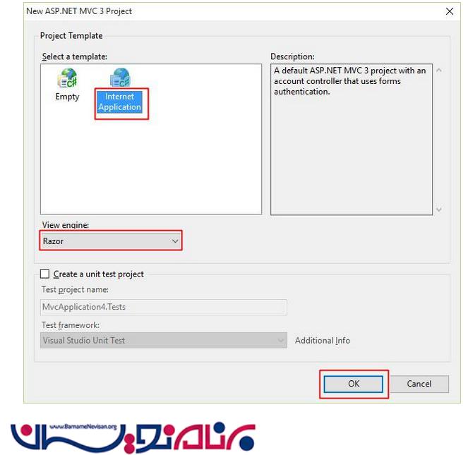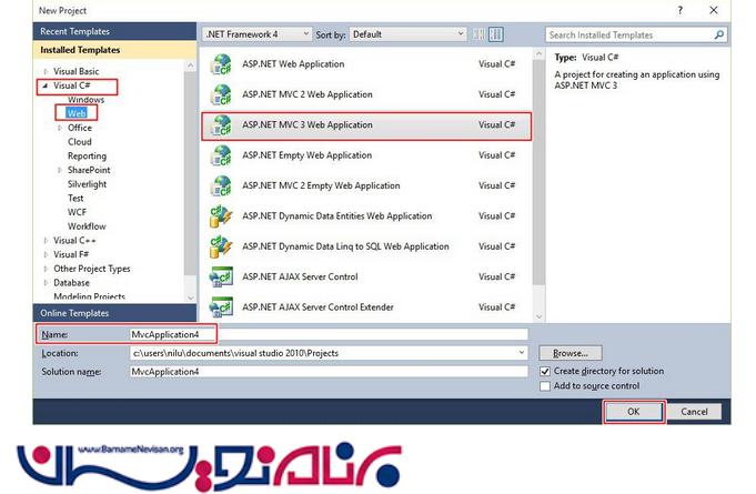 حال ویژوال استادیو را باز کرده و یک پروژه از نوع MVC ایجاد میکنیم