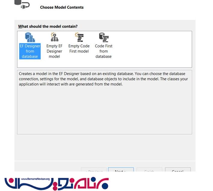 در این مرحله ابتدا EF Designer را انتخاب کرده و Next را میزنیم