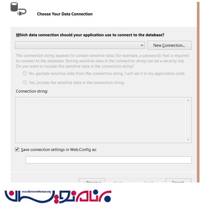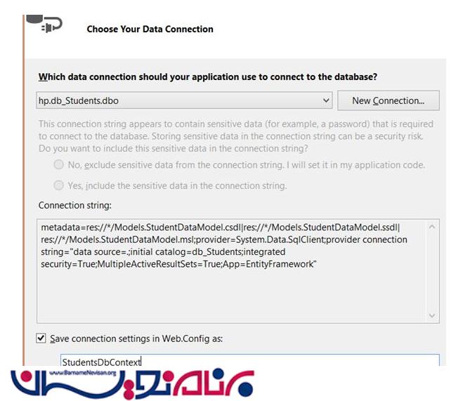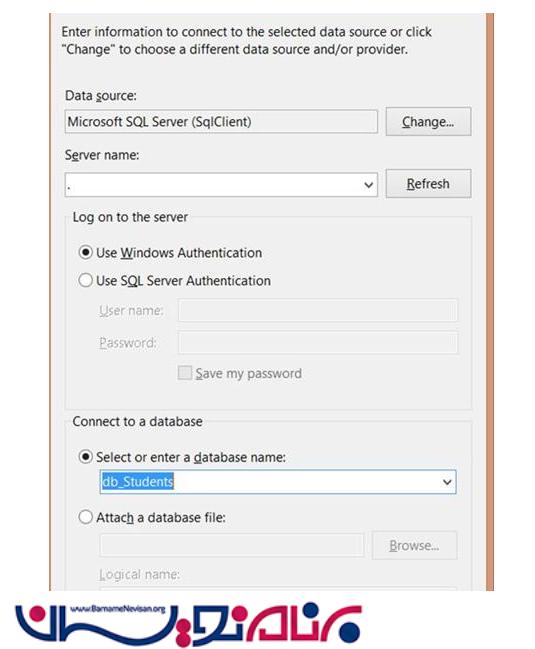 دراین مرحله باید نام بانک اطلاعاتی را که در Sql ساختیم را انتخاب کنید