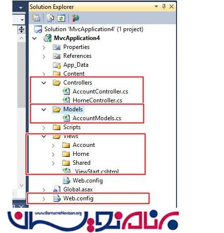 حال وقتی دکمه oK را بزنید با صفحه ای مانند زیر روبه رو میشویم و در این صفحه شما نمایی از MVC که شامل کنترلر ها و مدل ها و View هاست