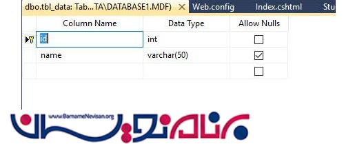 برای شروع یک بانک اطلاعاتی ویک جدول به نام Users با دوفیلد ID،Name و به صورت دستی در آن اطلاعات ثبت میکنیم .
