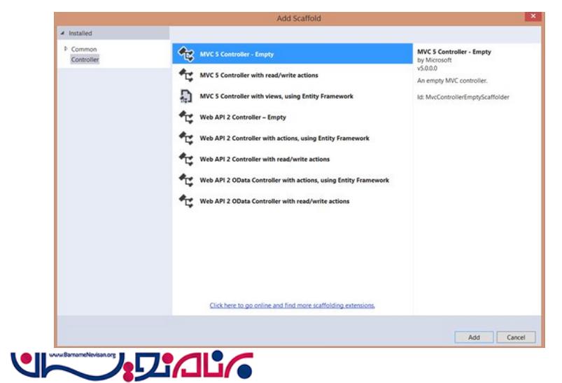 دراین مرحله یک Controller از نوع Empty به نام Home ایجاد میکنیم
