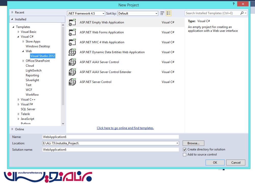 برای شروع یک پروژه از نوع ASp .net ایجاد میکنیم
