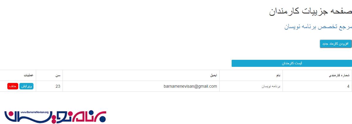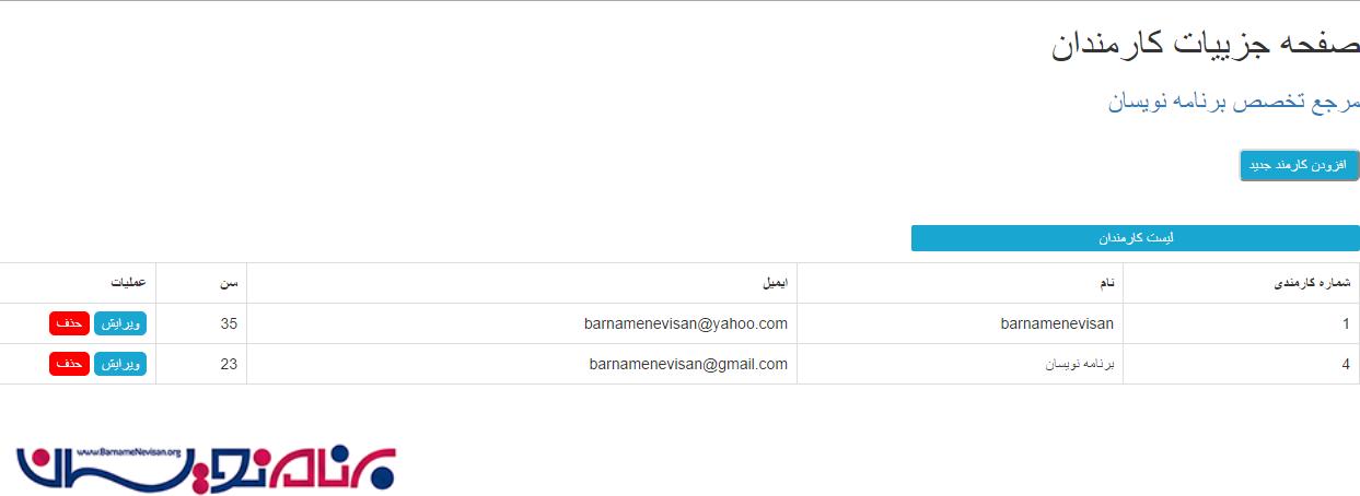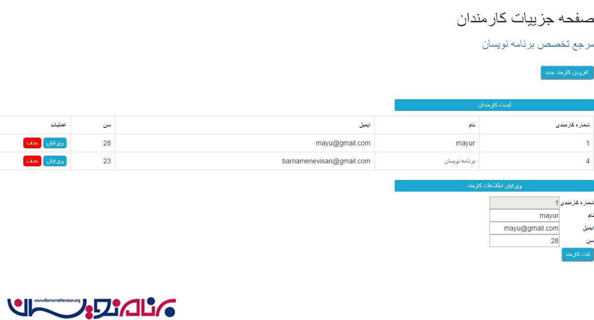 وقتی کاربر دکمه ی ویرایش را بزنید خروجی به صورت زیر خواهد بود:
