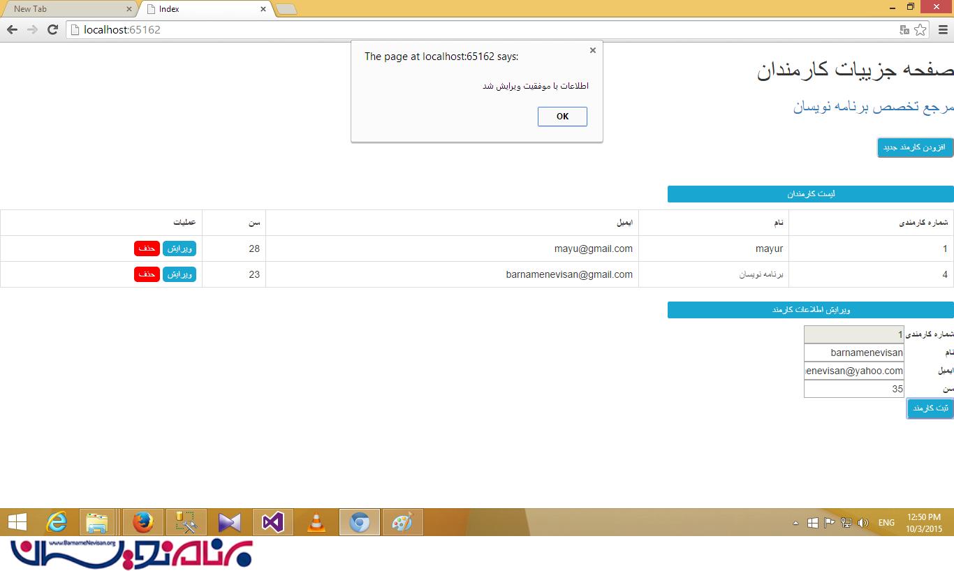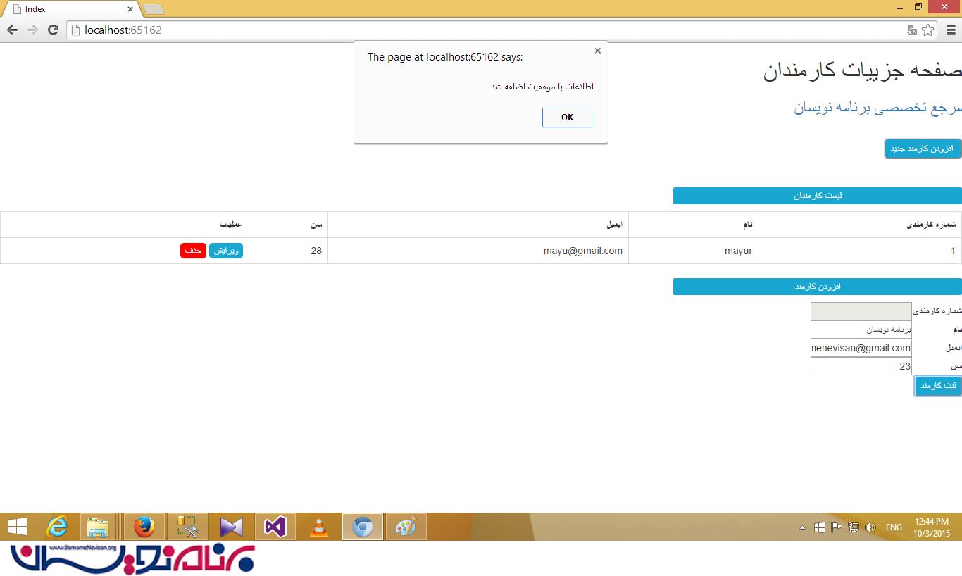 افزودن و ویرایش و حذف با AngularJs در MVC