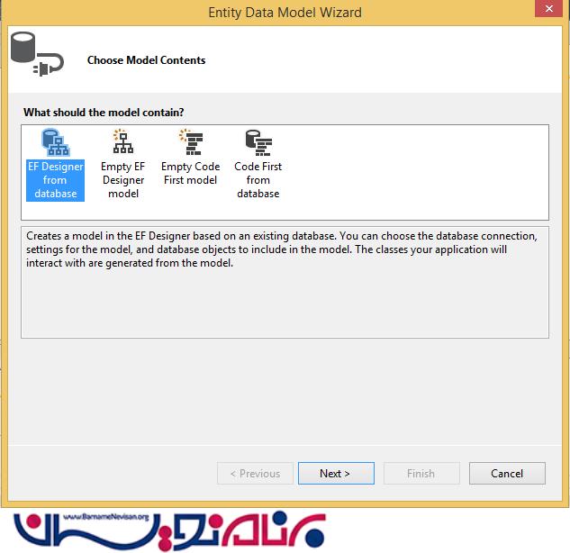 نام DataBase را از داخل DropDownList انتخاب کنید.