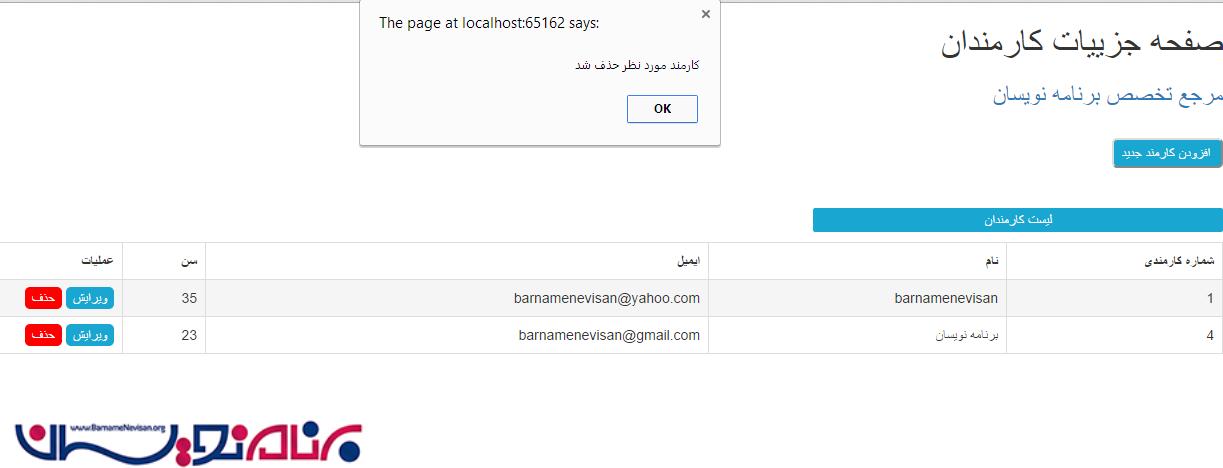 وقتی کاربر دکمه ی حذف را بزند خروجی به صورت زیر خواهد بود: