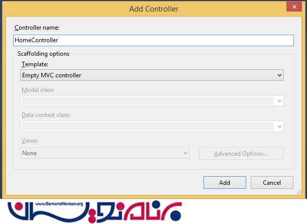 مرحله ششم:یک Controller جدید به نام HomeController می سازید.