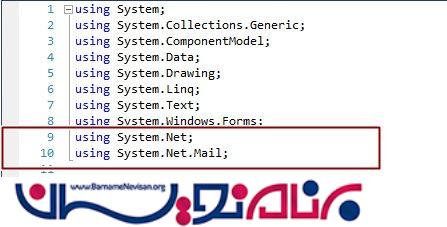 داخل رویداد دکمه ی ارسال ایمیل قطعه کد زیر را بنویسید: