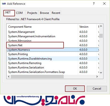و System.Net را انتخاب کنید و اضافه نمایید.