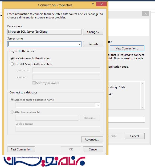 در پشت صحنه اطلاعات connection string هم در web.config ساخته می شود .