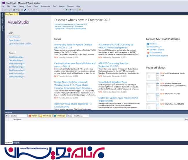 در اینجا از ورژن Visual Studio Enterprise 2015 استفاده شده است. شما می توانید از نسخه های دیگر هم مانند Visual Studio Professional 2015 استفاده نمایید.