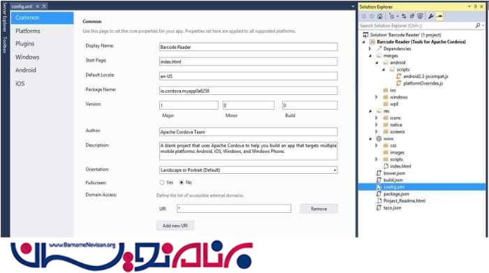 جمعه 8 آبان 1394در این مقاله شما نحوه ساخت برنامه اسکنر بارکد به صورت کراس پلت فرم توسط فریم ورک Cordova در ویژوال استادیو 2015 را خواهید آموخت. Cordova یک فریم ورک منبع باز برای ساخت سریع برنامه های کراس پلت فرم موبایل توسط html5، Javascript و CSS و غیره می باشد.