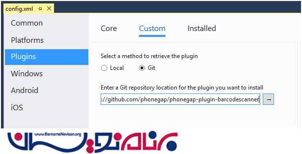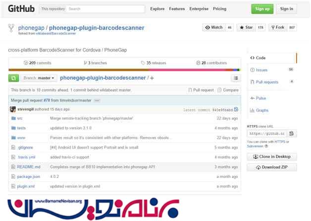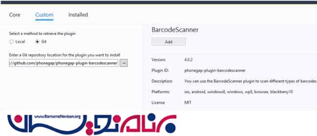 اینجا یک کتابخانه چند پلتفرم اسکنر بارکد برای Cordova و پلتفرم Phonegap در Git قرار دارد. روی لینک زیر کلیک کرده تا ریپوزیتوری Git مربوط به پلاگین اسکنر بارکد را مشاهده نمایید.