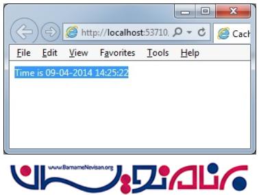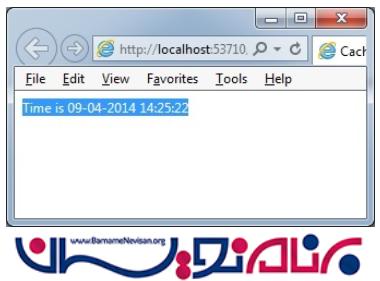 اگر حالا این برنامه را اجرا کنیم، زمان و تاریخ جاری سیستم را نشان می دهد. اگر این صفحه را refresh کنیم زمان نیز به روز می شود( به خاطر این که هنوز caching پیاده سازی نشده است).