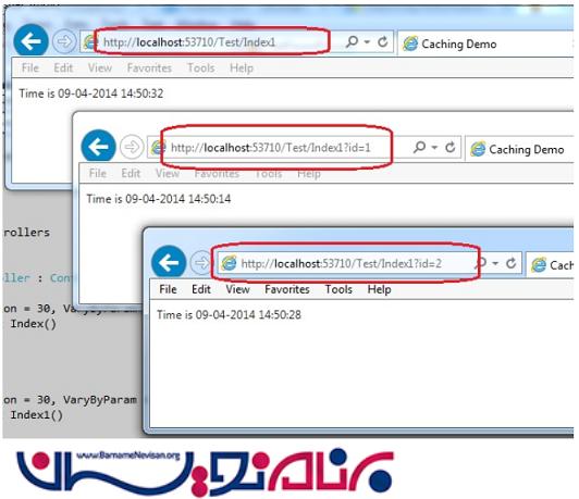 بنابراین اگر ما برنامه را اجرا کنیم می توانیم یک نسخه cache شده برای هر مقدار "Id" در query string داشته باشیم.