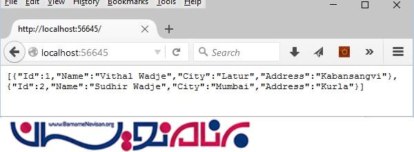 حالا برنامه را اجرا کنید، خروجی JsonResult در مرورگر به صورت زیر نمایش داده خواهد شد.