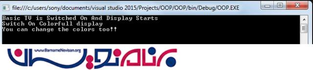 در کلاس پایه متدی که می خواهیم بازنویسی کنیم به شکل Virtual تعریف می کنیم و در کلاس مشتق شده با کلمه override آنرا به شکلی که می خواهیم بازنویسی می کنیم .بعد از اجرای کد شکل زیر را خواهید دید