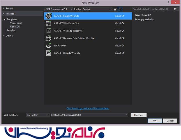 در مرحله اول یک وب سایت asp.net ایجاد نمایید با نام PDF
