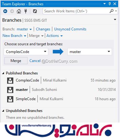 git حاوی subfolder ای با نام refs که شامل ارجاعات به شعبه است. ما در یک عملیات git بیانیه ای با نام fetch داریم fetch عملیاتی است که تازه ترین خبر ها را از شعبه های راه دور که ردیابی می کنید را میاورد این شاخه ها توسط VSO به صورت REmote به اشتراک گذاشته می شود . اوردن شعبه به این معنا نیست که هنوز میتوانید روی ان کار کنید و کد را ویرایش کنید اگر شما می خواهید مشارکت داشته باشید و کمک کنید به شعبه ، شما نیاز به ایجاد یک شبکه محلی دارید . زمانی که شبکه محلی همانند سازی شد شما می توانیدروی کد کار انجام دهید یا کد را ویرایش کنید بهتر است شما به صورت راه دور عملیات fetch و merge را انجام دهید.