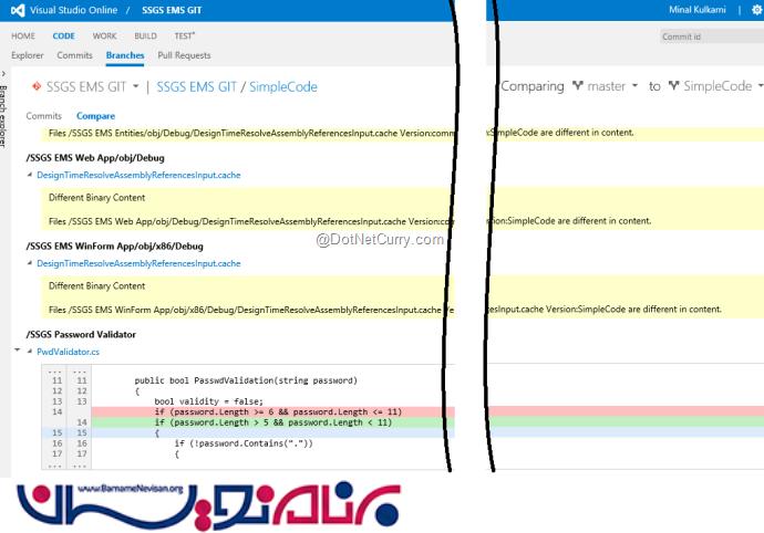 همچنین ممکن است شما مقایسه کنید 2 شاخه را و چک کنید تفاوت های ان شاخه ها را .