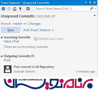دکمه async که شما در شکل میبینید یک عملیات خاص به vso است که ترکیبی pull که البته شامل عملیات fetch,mergeو Push می باشد.که همزمان شعبه محلی با شعبه از راه دور async می شود.