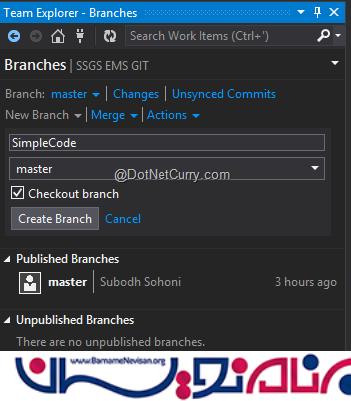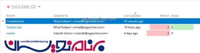 وقتی که مخزن git با vso برای یک تیم پروژه ایجاد میشود و تیم شروع به کار بر روی ان میکند. تنها یک شاخه پیش فرض در vso وجود دارد که نام ان master می باشد.