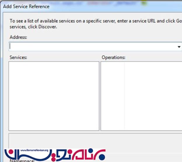 روی نام پروژه کلیک راست کرده سپس پنجره Service Reference باز می شود.