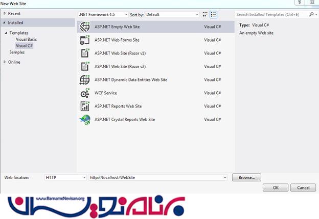 ویژوال استادیو را باز کرده روی File کلیک کرده و مانند زیر یک وبسایت ایجاد می نماییم.