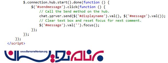 علاوه بر آن یک تابع جاوا اسکریپت دارد که داده ها به وسیله ی Hub دریافت می کند و به روز رسانی می کند.