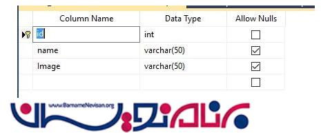 برای شروع یک بانک اطلاعاتی به نام SaveImage_DB و یک جدول مانند زیر ایجاد میکنیم