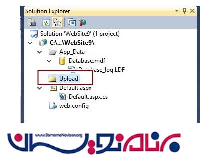 حال برای ذخیره تصاویر روی پروژه راست کلیک کرده و در Add>NewFolder یک فولدر به نام Upload ایجاد میکنیم