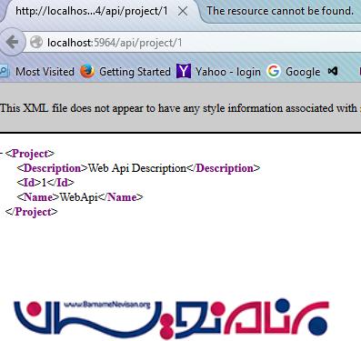 اگر ما آدرس http://localhost:5964/api/project/1 را درخواست کنیم، پروژه با Id=1 بازگشت داده خواهد شد.